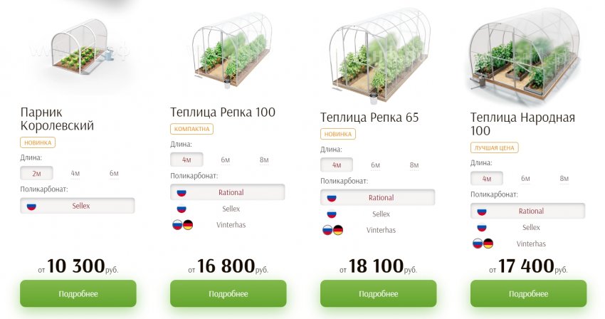 С помощью современных технологий Вы можете купить теплицу у производителя в интернет - магазине, то есть, Вам не придется ездить и выбирать из того, что будут предлагать менеджеры! Вы сами выбираете теплицу, просто основываясь на бюджет и предпочтения.