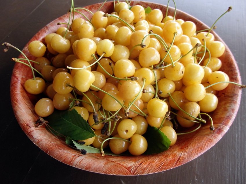 - Бигарро желтая относится к позднеспелым. Обладает хорошими вкусовыми характеристиками. Ягоды наделены тонкой кожицей, поэтому плохо переносят транспортировку. Не подходят для длительного хранения.