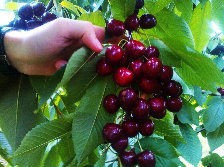 - Тютчевка. Темно-красные ягодки весом до 8 г, на вкус сладкие с плотной консистенцией. Косточка легко отходит от мякоти. Сок – красный. Урожай с одного взрослого дерева достигает 90 кг. Плодоносит в последних числах июля. Самоплоден, не требует близкой посадки других деревьев этой культуры. При самоопылении дает урожай не в полную силу. Если рядом посадить Радицу или универсальные опылители, количество плодов увеличивается в несколько раз.