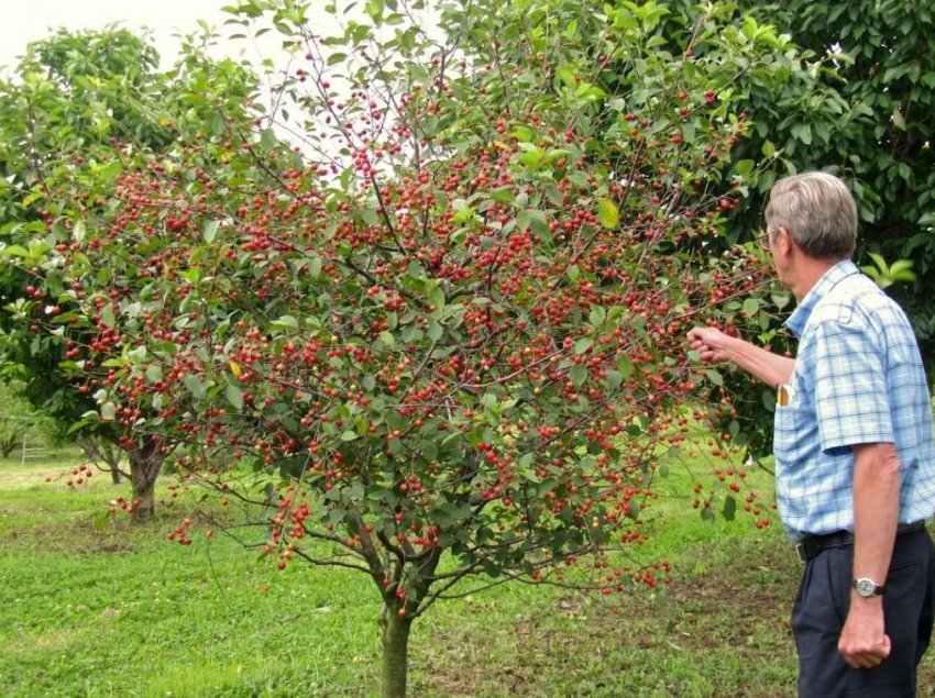 У низкорослых сортов черешни в средних широтах больше шансов на хороший урожай. Это легко объясняется биологическими особенностями растений. Высокорослой черешне приходится тратить много сил на противостояние неблагоприятным условиям местного климата. Оно формирует роскошную крону, затрачивая энергию, которую могло бы пустить на формирование плодов. У карликовых и низкорослых сортов такой проблемы нет – мини-деревца сосредотачивают максимум сил на плодоношении.