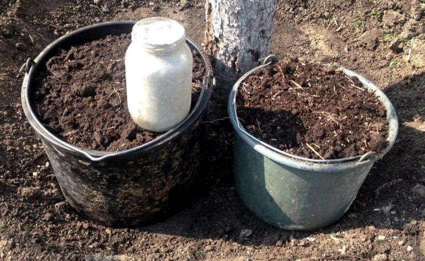 Удобрение может быть внесено при подготовке ямы для посадки дерева. Выкапывают лунку размером 700*700*700 мм. Затем обогащают нижний слой земли с помощью 6-10 ведер компоста либо 2-3 ведер перегноя. Землю, которая извлечена из лунки, перемешивают с калийно-фосфорной подкормкой. Соотношение 1:1. Если необходимо, землю раскисляют гашенной известью. На лунку достаточно 400 г. Далее обогащенную землю возвращают в яму, уплотняют и заливают на 1 лунку 3 ведра воды. Сверху закрывают фанерным листом, чтобы грунт не вымылся. Выжидают полмесяца, чтобы растворились все минеральные элементы. Желательно после посадки дерева применить «Корневин». Он помогает быстрому росту корней. Готовят раствор из 5 г порошка и 5 л воды. Им поливают приствольный круг.