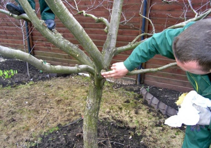 Также удаляют все участки отставшей коры. Именно в таких местах зимуют вредители.
