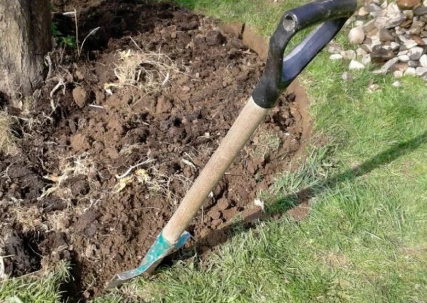 Чтобы уничтожить вредителей, землю перекапывают на глубину не более 15 см. Процедуру проводят аккуратно, чтобы не повредить корневую систему. За пределами кроны землю перекапывают глубже (на штык лопаты).