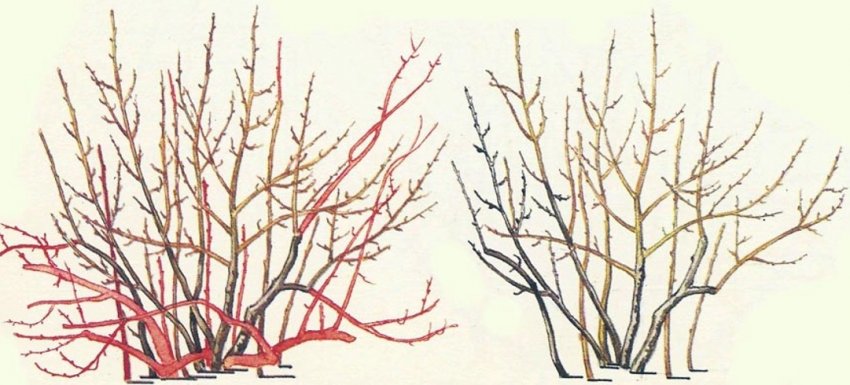 - осматривают кустарник, выявляют старые, больные, поврежденные ответвления;