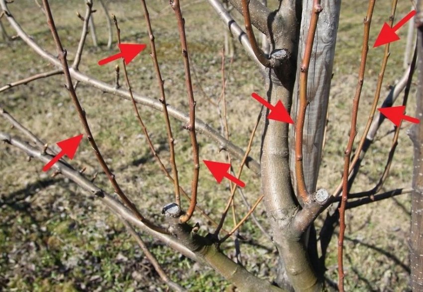 - У взрослых деревьев нормировать количество плодовых веток, чтобы они давали хороший урожай, но при этом не перегружались. Убирать поросль, волчки и загущающие побеги ежегодно. Укорачивать приросты, стимулировать усиленное образование кольчаток с плодовыми почками.