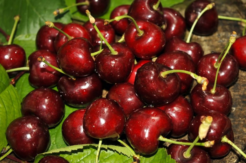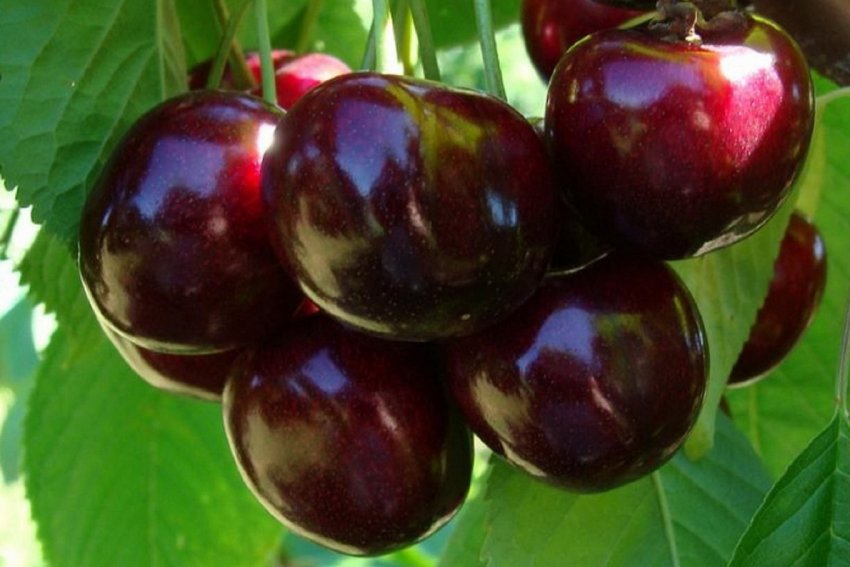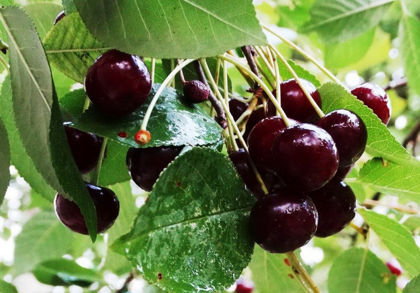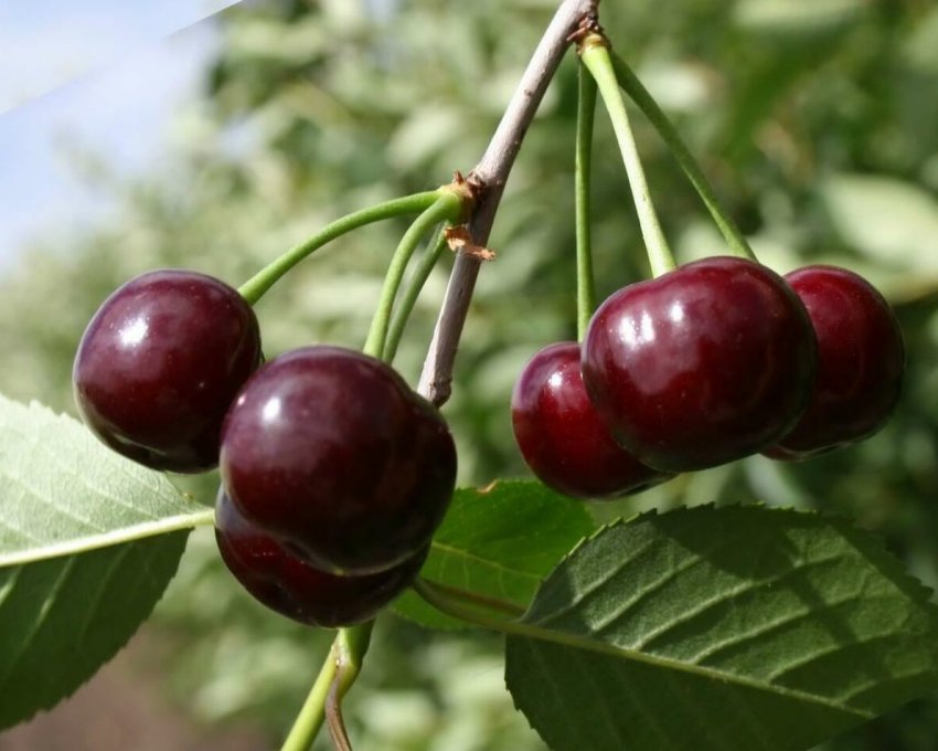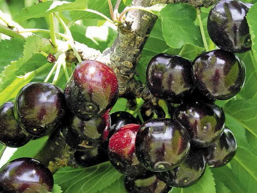 Бархатную черешню выращивают преимущественно в южных регионах. Ягоды крупнее обычного – достигают веса в 7,8 г. Созрев полностью, становятся практически черными. Консистенция мякоти очень плотная, а сок – темно-красный.