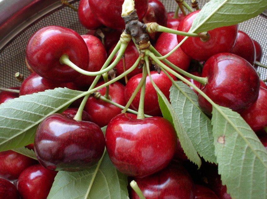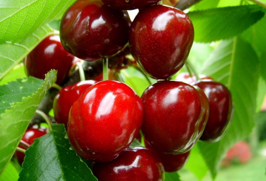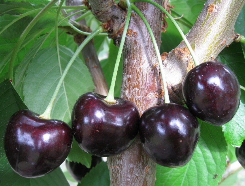 На дереве средней высоты – до 3,5 м, вырастают крупные черешни насыщенно-красной окраски. Особенность плодов – заостренные верхушки. Косточки и плодоножки отделяются беспроблемно. Вкус превосходный, содержание сахара достигает 12%.