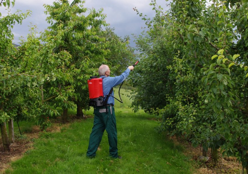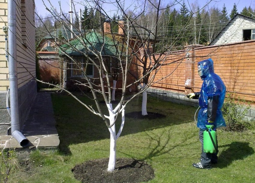 Еще одним обязательным профилактическим мероприятием является защита от насекомых-вредителей. Они ослабляют защитные силы растения. Паразиты переносят на своих телах частицы экссудата, содержащего опасные бактерии. Крону опрыскивают инсектицидами или изготовленными в домашних условиях народными средствами. Обязательно против насекомых обрабатывают приствольный круг. Для этого вовремя уничтожают сорняки, осенью проливают землю растворами инсектицидов.