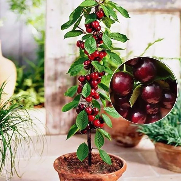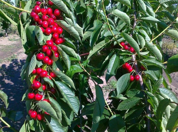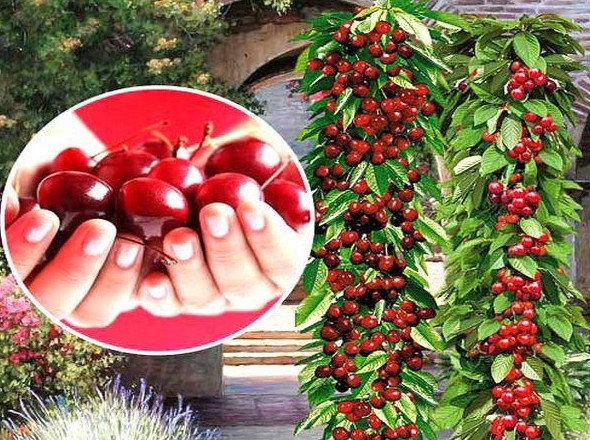 В зависимости от сорта плоды колоновидной черешни могут иметь черный, красный или желтый цвет. Невысокие деревья по форме напоминают стройные колонны, что придает участку ухоженный вид. Недостатками считаются недолговечность и необходимость периодически обрезать боковые отростки, чтобы придать кроне аккуратный вид.