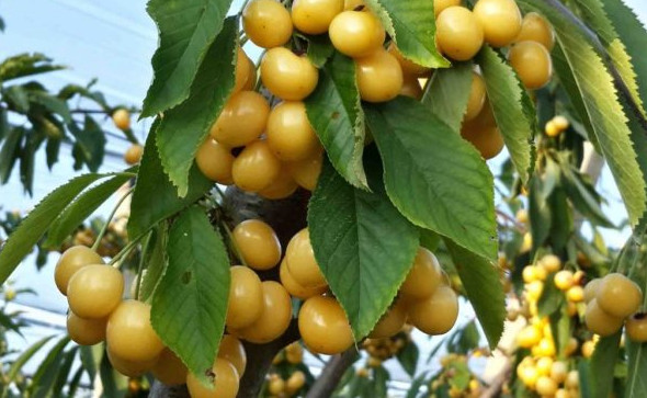 - Желтая. Деревья этого сорта рекомендуются для промышленного выращивания: крепкие ягоды пригодны для перевозки, подходят для консервирования на зиму. Неприхотливая в уходе, нетребовательная к поливу, но предпочитает не заболоченную почву.