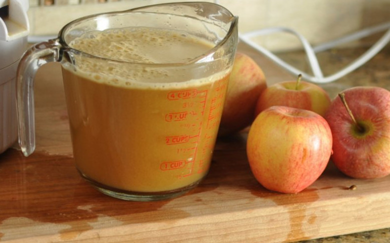 - Свежевыжатый сок. Не содержит клетчатки, поэтому не может использоваться при похудении. Однако такой напиток является источником большинства жизненно необходимых элементов. Повысить положительные свойства яблочного сока можно используя его в сочетании с тыквенным, морковным, виноградным, клубничным или персиковым.Калорийность соков выше, чем целых плодов, они могут повысить уровень глюкозы в крови, поэтому не рекомендуются диабетикам.