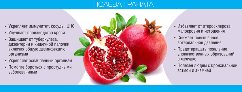 Полезные свойства - при сниженной деятельности иммунитета употребление дважды в неделю граната активирует защитные свойства организма;