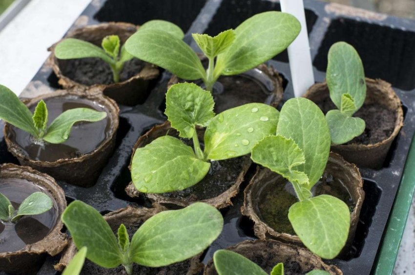 Поскольку корневая система кабачков чувствительна к механическим воздействиям, выращивание рассады из семян осуществляют в индивидуальных ёмкостях. Самыми удобными являются горшочки из торфа или прессованной рисовой муки, прямо в которых растение можно пересаживать в грунт. В дальнейшем они полностью разлагаются под воздействием почвенной влаги.