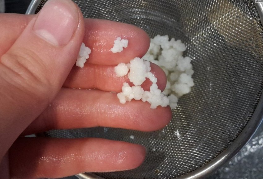 Если в ходе закваски частицы грибка всплывают на поверхность – их удаляют. На качество кефира их появление не влияет. При выращивании гриба нельзя использовать металлические предметы.