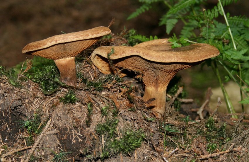 По внешнему виду коровник выглядит как лисичка. У этих грибов схожи ножки, форма и бурый цвет шляпки, однако по своей текстуре они разные. У лисичек она бархатистая, а свинушки – гладкие.