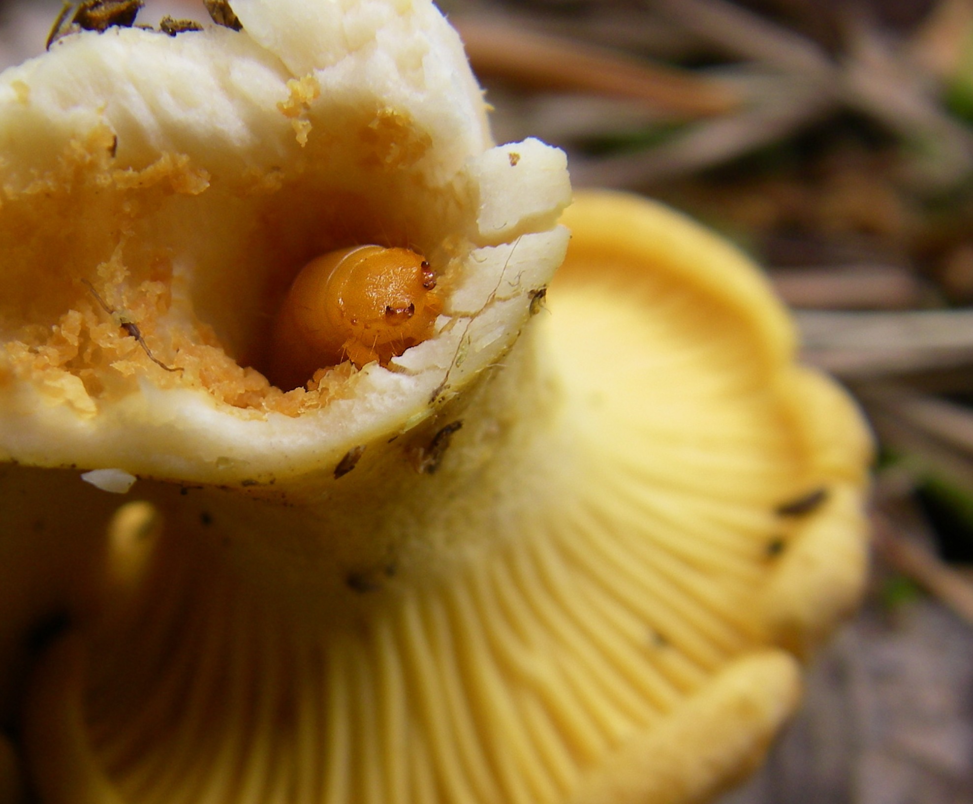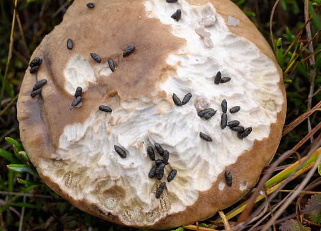 Вероятность наткнуться на мухомор или бледную поганку, пораженную личинками, довольно высока, ведь их яд не несет никакой угрозы для этих насекомых, так как их метаболизм существенно отличается от человеческого. К тому же некоторые несъедобные плоды источают аромат, который только насекомых и привлекает.