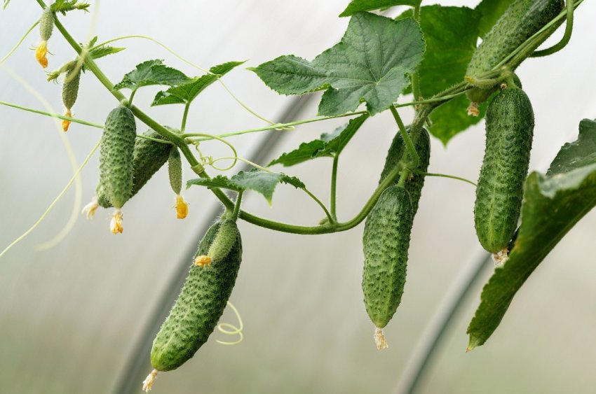 Подкормка огурцов в закрытом грунте производится регулярно, с частотой 1 раз в 5-10 дней. Состав и сбалансированность удобрений зависит от этапа роста: