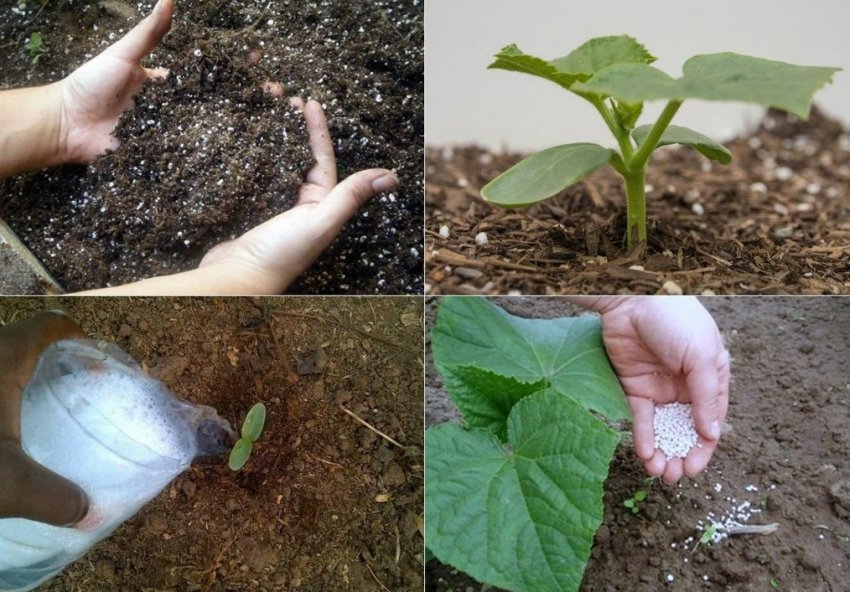 После появления росточков (через 3-4 дня) пленку убирают, температуру снижают на 4-5 дней до +18ºC. В дальнейшем поддерживают показатели +20ºC…+22ºC, регулярно поливают и рыхлят почву. В качестве подкормок применяют составы Идеал, Фертика, Кемира для рассады огурцов.