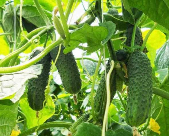 Вариант используют чаще всего для зимних заготовок. Короткие компактные зеленцы удобно укладывать в банки. Они долго не перерастают, собирать огурцы можно и 2 раза в неделю, хотя растения хорошо реагируют на ежедневный сбор.