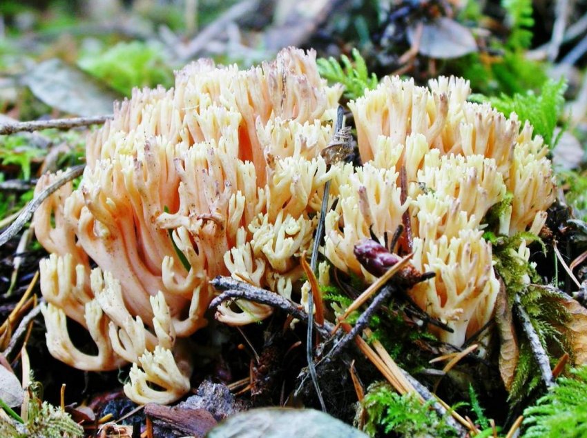 На фото отлично видно, что наземная часть гриба оленьи рожки весьма ветвистая.