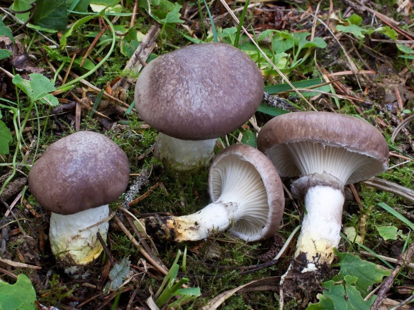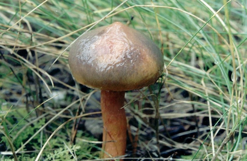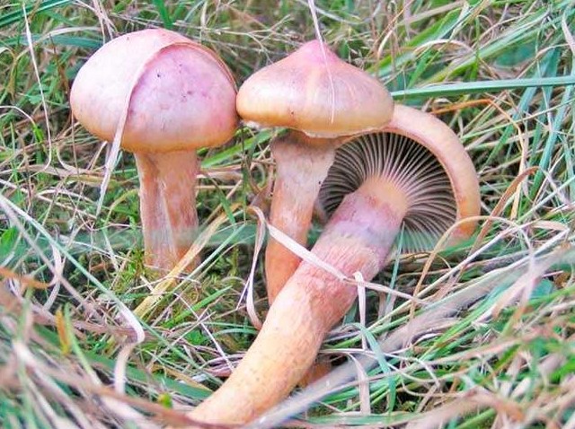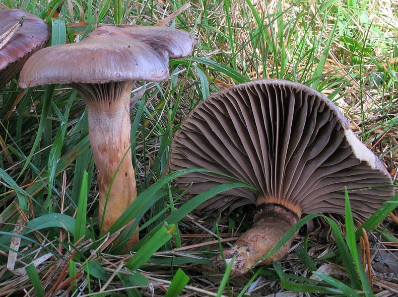 Пурпурная мокруха – довольно редкий представитель семейства. Несмотря на название, цвет становится таким только под воздействием палящего солнца. Особенности:
