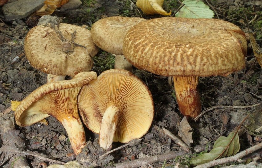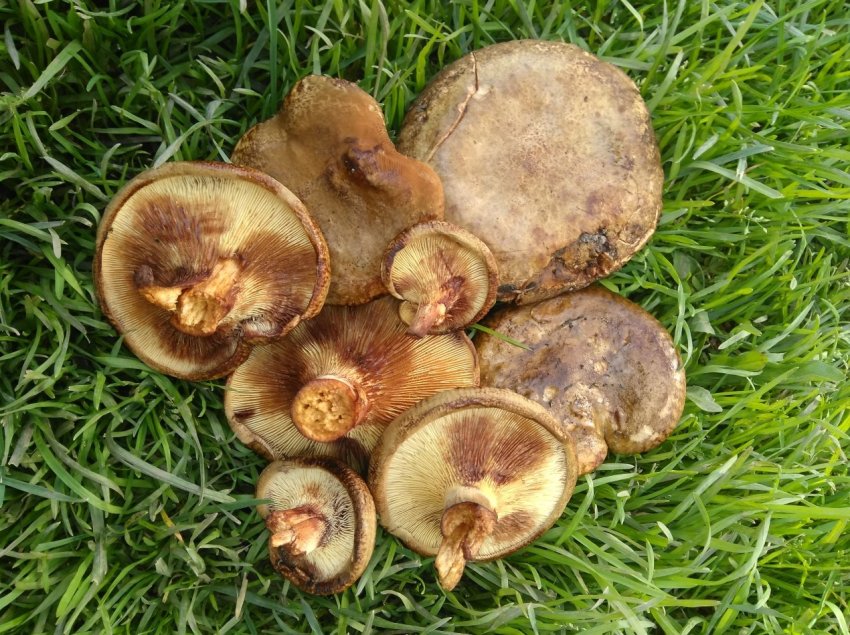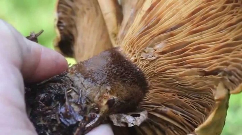 - Наличие коричневых лжепластинок под шляпкой является характерной особенностью гриба.