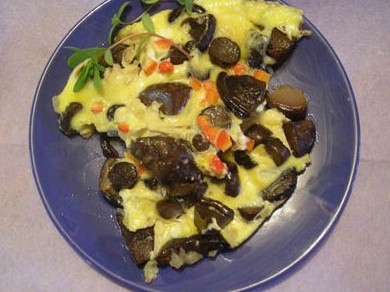 Такой омлет обладает отличными вкусовыми качествами и довольно сытный, мясные добавки к нему абсолютно не нужны.