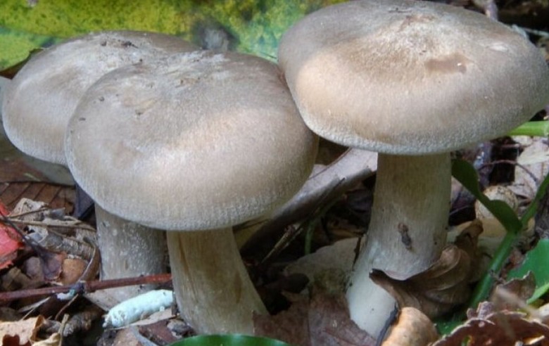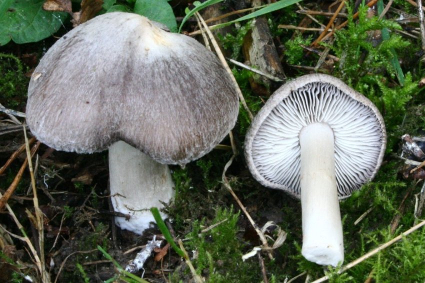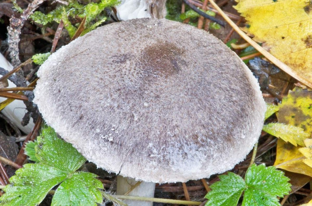 Землисто-серая рядовка отличается своеобразным покрывалом у молодых особей, которое со временем разрушается.
