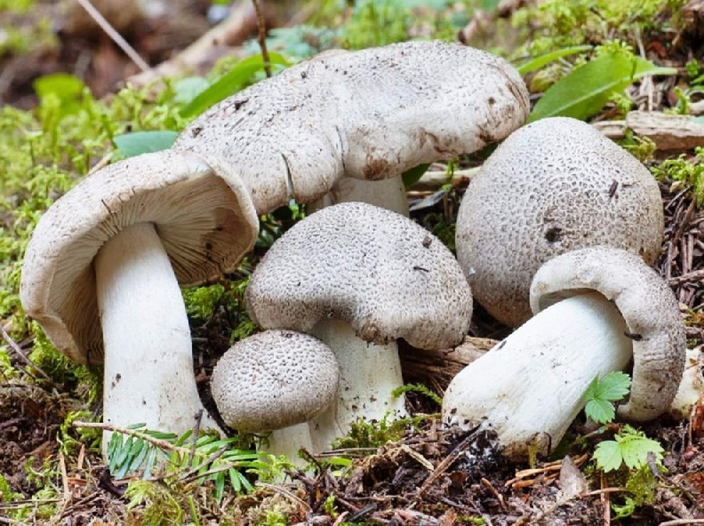 - Серая рядовка. Получила свое название благодаря окрасу. С возрастом на гладкой поверхности шляпки появляются трещинки. На срезе может иметь желтоватый или сероватый цвет. Запах мучнистый, а вкус приятный.