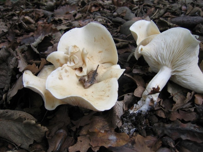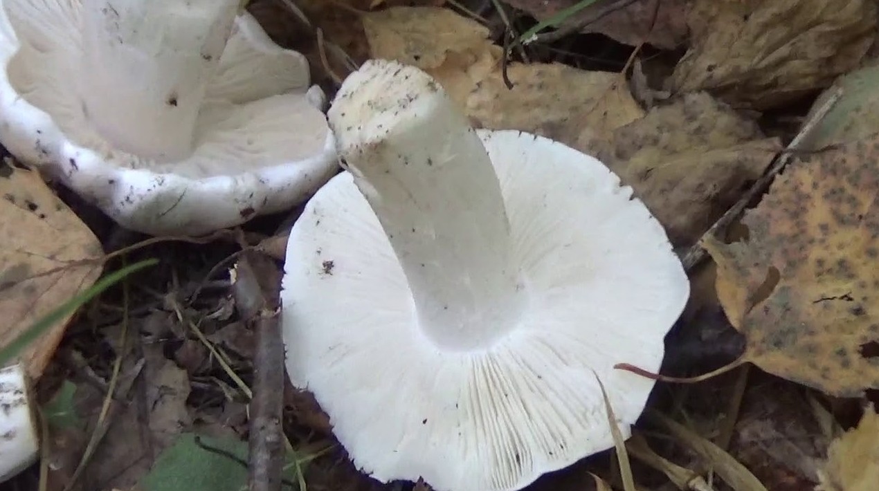 - Белая. Имеет в молодом возрасте шляпку с загнутыми краями, потом, с возрастом, они распрямляются. Кожица сухая. Гладкая, белого окраса. Легко отличить по запаху, мякоть имеет затхлый мыльный запах.
