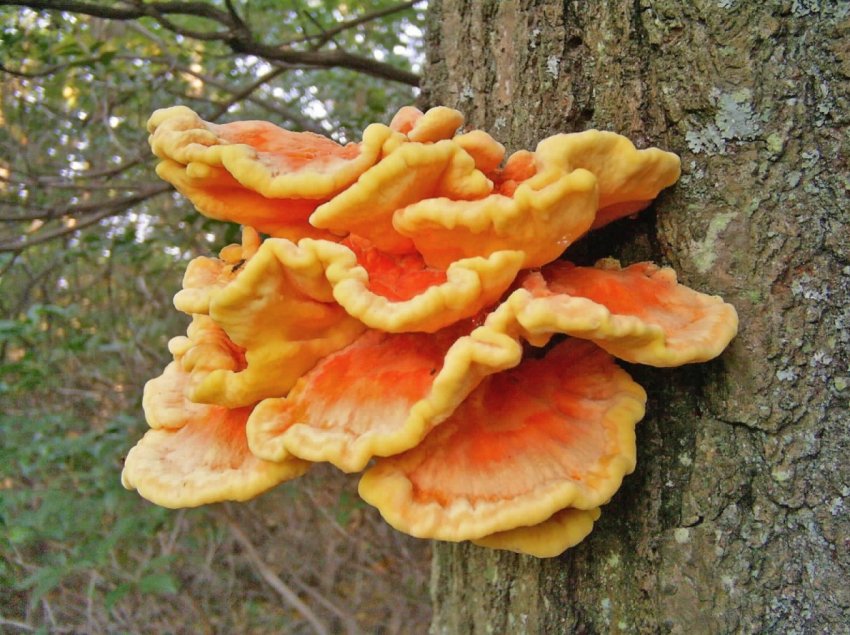Трутовик серно-желтый является условно-съедобным. Данный вид представляет собой волнообразную, многоярусную массу округлой и в то же время плоской формы. Цвет у данного вида трутовика ярко-желтый. Поверхность плодового тела укрыта желтым же пушком.