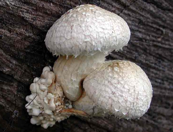 Ее еще называют тополиной чешуйчаткой. Данный вид в процессе своей жизнедеятельности разрушает дерево, на котором растет. Шляпка у чешуйчатки разрушающей достигает 20 сантиметров в диаметре и имеет белый или светло-желтый оттенок, вся она покрыта крупными чешуйками белого цвета. У взрослых грибов чешуйки отсутствуют, а край шляпки становится неровным и волокнистым. Пластинки у шляпки белые и сросшиеся с ножкой, со временем приобретают темный коричневый цвет.
