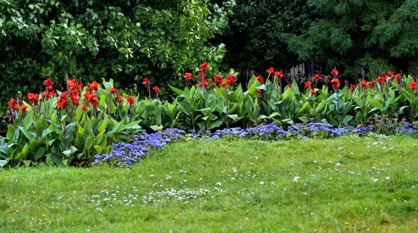 Как украсить ваш дачный участок цветами канн? При озеленении участков высаживают массивные цветы канн разных сортов, которые подбирают по высоте куста, окраске соцветия и особенно по окраске листьев.