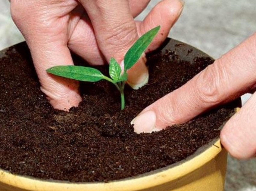 - Присыпают, аккуратно утрамбовывают около стебля, чтобы не повредить нежные корни.