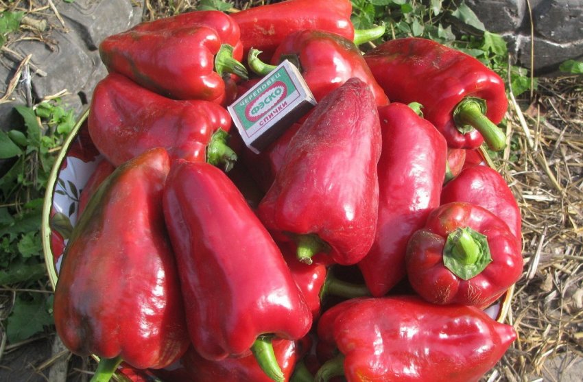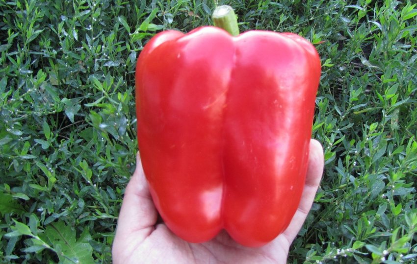 Среднеспелый сорт с началом плодоношения через 132 дня после посадки семян. Способ выращивания — рассадный. Кусты склонны к полеганию, высота 70 см. Цвет спелых стручков бордовый или красный, конусовидной формы с ребристой верхушкой. Толщина стенок до 6 см. Вес одного экземпляра — 70-100 г. (рекордный — 160 г.). Сбор плодов — до 4,5 кг с 1 м2 .