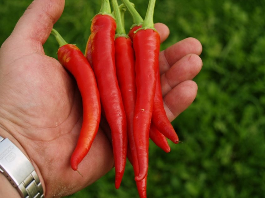 Мои горькие стручки растут и дома и в огороде. Для комнаты сажаю сорт Бабье лето, а на грядках — Аджику, Задиру. Отличные растения, приносят хороший урожай. Ведь жгучих перцев много не нужно, только чуть-чуть для остроты блюд. Богатырь и Атлант сажаю непосредственно на грядках. Они не капризные, но если похолодает, стараюсь их утеплить.
