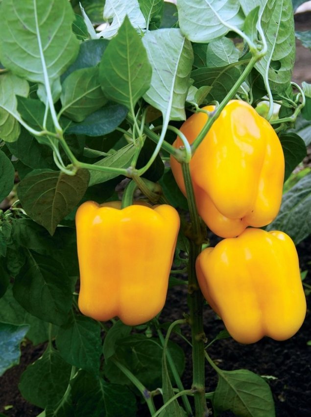 Выращиваю болгарский вот уже более 20 лет. В этом году случайно купил семена «Желтый колокол» и не прогадал. Хотя он и позднеспелый, но урожай порадовал уже в середине июля. Кусты мощные, вымахали на высоту почти полутораметровую. Болезни растения не поразили. Я поливал его не очень часто, так как лето было дождливое. Единственный негативный момент, что время от времени убирал сорняки. Вскоре появились плоды. На каждом кусте росли от 6 до 10 крупных перцев. Всем советую.