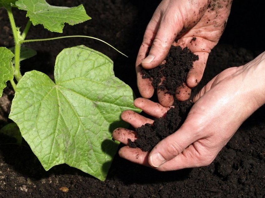 В течение первых 2-х недель жизни рассады на постоянном месте используют комплексные жидкие удобрения. Вносят их одновременно с поливом. На 1 растение уходит 2 л смеси. С 3-й недели переходят на стандартную подкормку. Гибридные сорта «Дружная семейка F1» и «Веселая семейка F1» отдают предпочтение органическим подкормкам. Норма расхода – 1,5-2 кг на 1 м² участка. Если синоптики обещают заморозки, садовод слегка корректирует рецепт. Готовит смесь из коровяка и помета птиц в соотношении 1:3. Готовый продукт раскладывают возле приствольного круга.