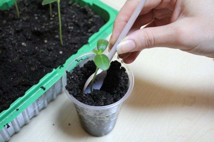 На заметку!Пересадку на постоянное место проводят сразу как на стебле появится 2-3 листа, а температура воздуха будет + 15 С + 17 С.