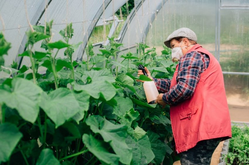 Обрабатывают готовым средством каждый куст огурцов, независимо от места произрастания: парник или открытый грунт.