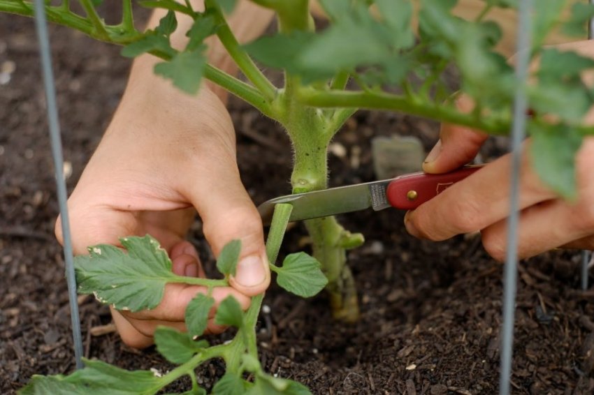 Внимание!Удаляют дополнительные побеги, пока они не стали слишком тонкими, оставляя небольшой пенек, чтобы на начал расти новый пасынок.