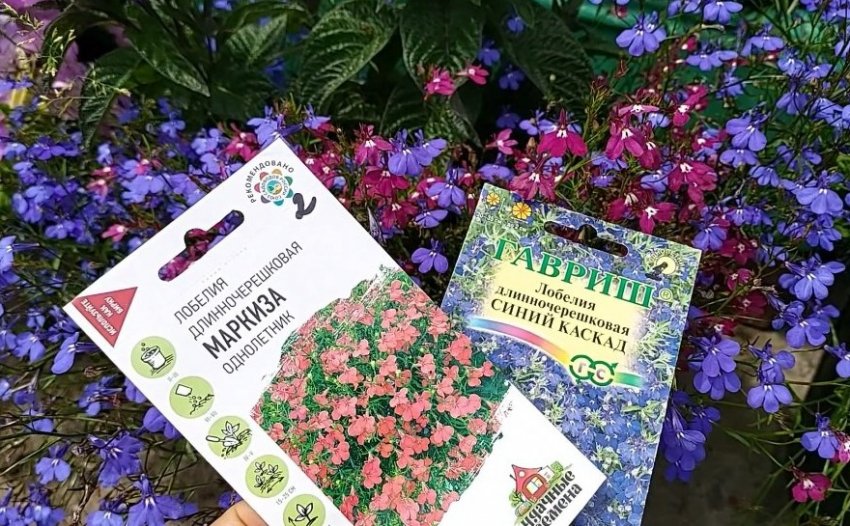 Лобелияс красивым ажурным цветением отлично смотрится в уличных вазонах. Покупала два сорта лобелии длинночерешковой с разной окраской. Лобелия Синий каскад от фирмы Гавриш меня покорила небесно-синей окраской цветков с характерными белыми точками с центре. А вот лобелия Маркиза фирмы Удачные семена в реальности имеет совсем другой вишнёвый оттенок цветков, сравнивая с фото на пакетике семян он более красный.