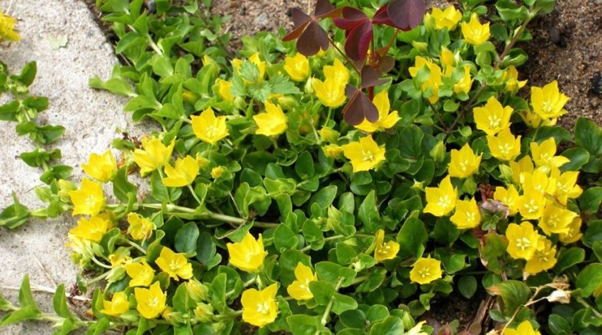 Вербейник монетчатый часто в народе называют луговой чай. У этого растения стебли лежат на земле, достигая длины 30-40 см, они покрыты парными округлыми листочками, похожими на монетки. Цвести вербейник может все лето, покрываясь мелкими желтыми колокольчиками. В природе вербейник растет по берегам рек, в оврагах, на болотах и в тенистых летах, при таких же условиях в саду этим почвопокровным многолетником можно оформить берега искусственного водоема, озеленить место с постоянно сырой землей или высадить в тени деревьев. Вербейнику все равно где расти в тени или на солнце, главное, чтобы в земле растению хватало влаги, тогда ковер из стелящихся побегов будет невозможно вытоптать, а для обновления вербейник можно периодически скашивать.