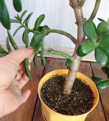Побеги толстянки разветвляются неохотно. Если толстянку не формировать то она будет тянуться, в итоге тонкий ствол искривятся, а растение будет заваливаться в сторону.