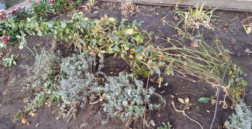 Осенью я стараюсь не обрезать розы, а пригибать. Санитарную и формирующую обрезку роз буду проводить весной, когда уберу укрытие.