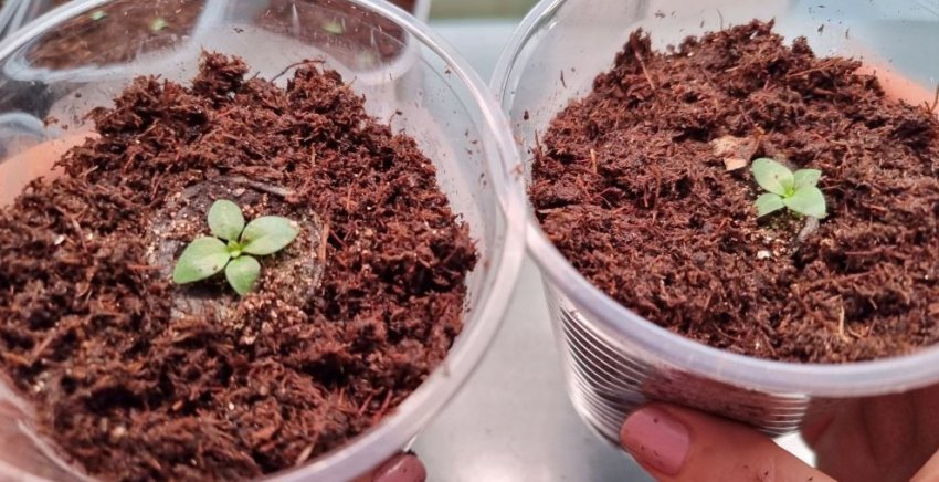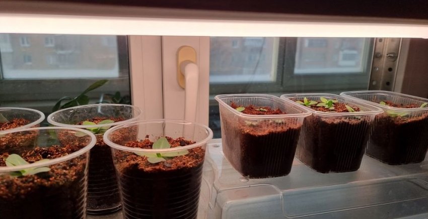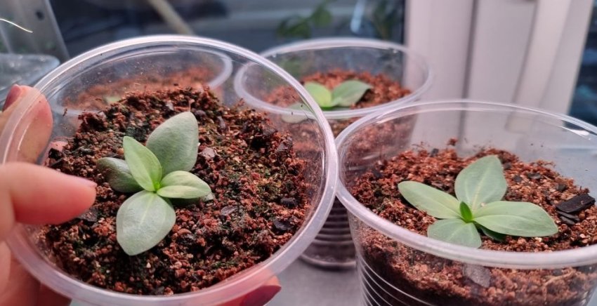 - Полив регулярный и умеренный, нельзя допускать переувлажнения или пересыхания субстрата в стаканчиках.
