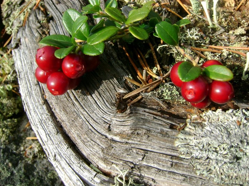 Вечнозеленый полукустарник из вересковых. Растет там, где много сырости и влаги – умеренных и северных краях с заболоченными низинами, старыми торфяниками. Багрово-красный кислый шарик поспевает в сентябре-октябре. Отменно переносит зимние морозы и снег, становясь слаще (гурманы предпочитают весеннюю – перезимовавшую журавлину), но в осенней ягоде больше: