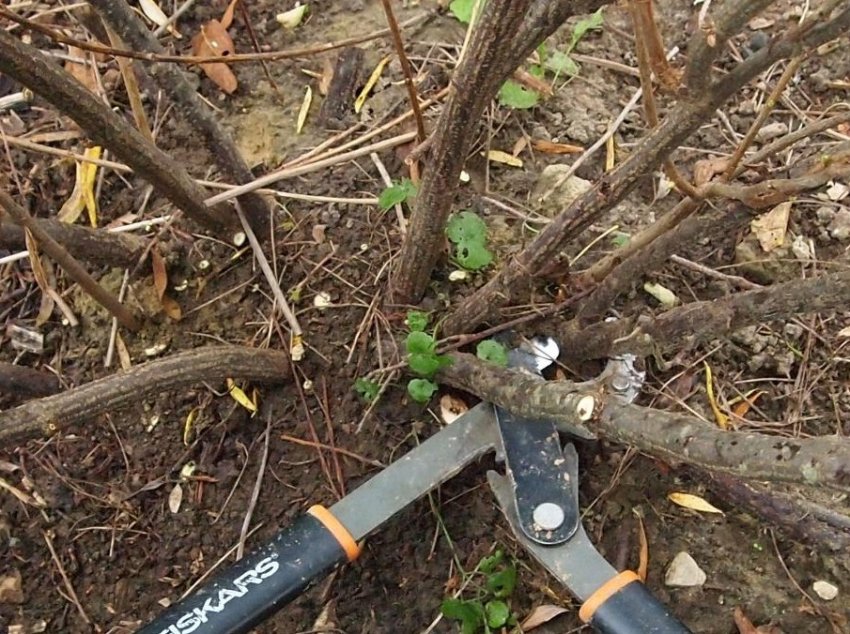 - С 4 лет проводят формирующую обрезку, удаляя толстые ветки в центре куста, слабые и стелющиеся по поверхности земли побеги. Обязательно срезают стебли с малым приростом.