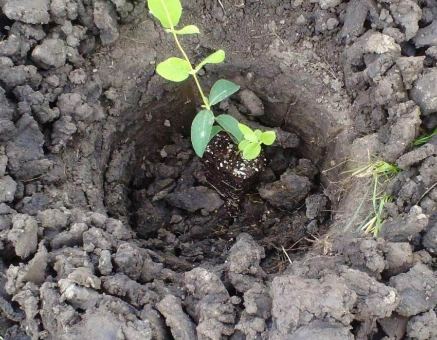 На грунтах с высокими показателями кислотности перед осенней посадкой жимолости примерно за 1-1,5 месяцев вносят мел или гашеную известь (по 100-200 граммов на квадратный метр). На глинистых почвах в яме делают дренажный слой.