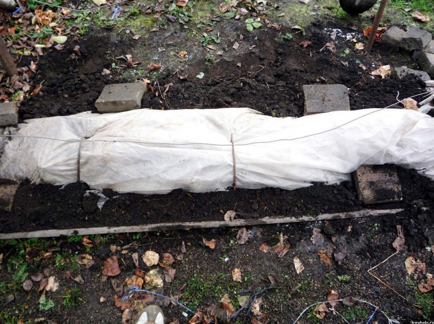 - На землю обязательно положите защитный слой: рубероид, пластик, стеклоткань.